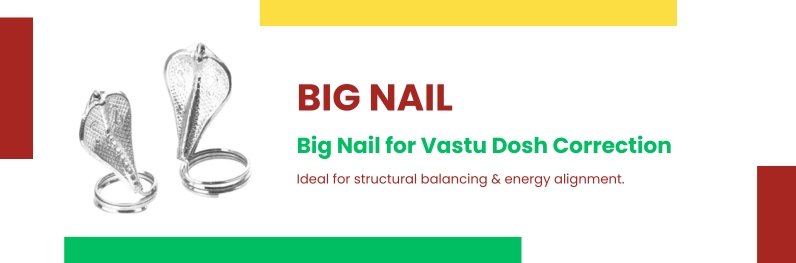 The Big Nail is a highly effective Vastu correction tool used to rectify architectural defects without breaking or reconstructing any part of the property. It is especially designed to balance negative energy zones by grounding and stabilizing disturbed vibrations in specific directions.